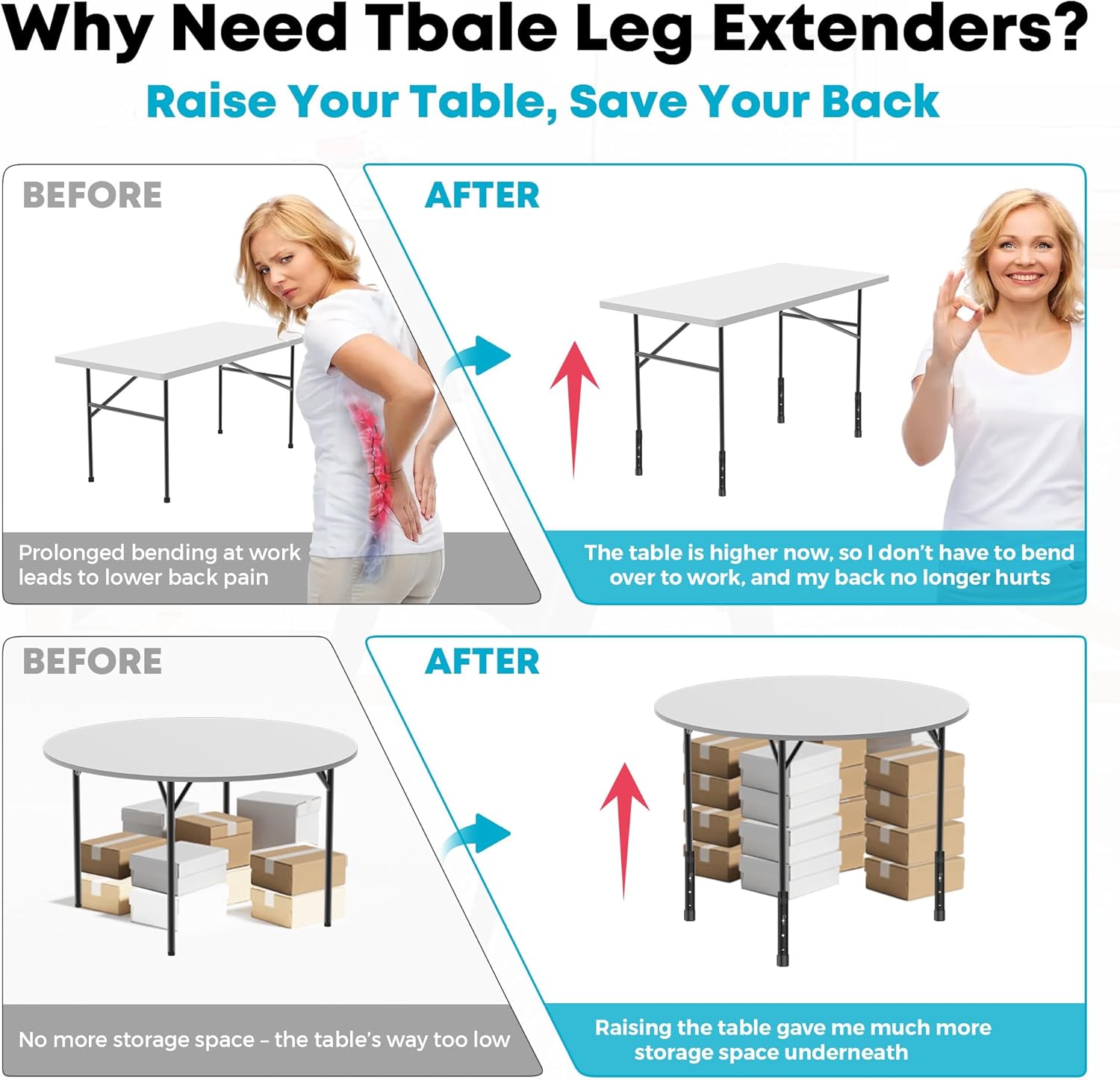 | Included Components | 4 Folding Table Leg Risers, 4 eye bolts (with B-type locking pins), 4 large fixing bolts, 4 non-slip rubber covers |