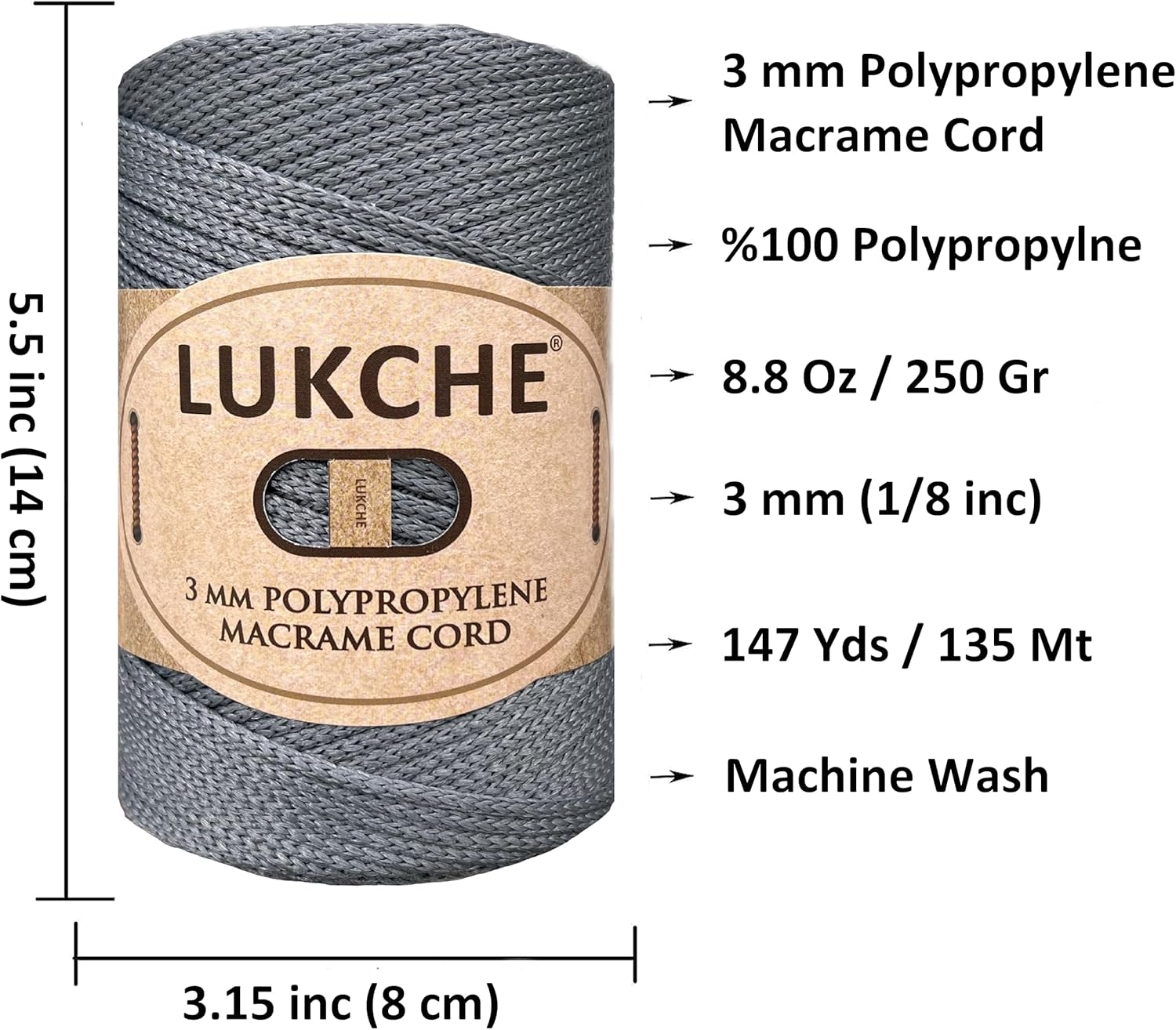 ★Elevate your crochet and crafting projects with Lukche's premium Polyester Macrame Cord. This versatile 3mm polyester cord is designed to meet and exceed your creative needs, whether you're a seasoned crafter or just beginning your crafting journey. Lukche's macrame cord offers a soft and luxurious texture, ensuring comfort during your crafting sessions while maintaining high-quality results. ★Make a statement with your creations, achieve professional results, and enjoy the journey of crafting with Lukche's high-quality Polyester Macrame Cord. Don't miss the opportunity to craft with confidence and distinction. Order Lukche's cord today and let your imagination run wild.★Product Features-Material: 100% Polypropylene-Ball Weight: 250 Gr-Ball Length: 135 Mt - 147 Yds-Product Thickness: 3 Millimeters-Product Care Instruction: Machine Wash-Crochet Size: 7-8 mm-Needle Size: 7 mm