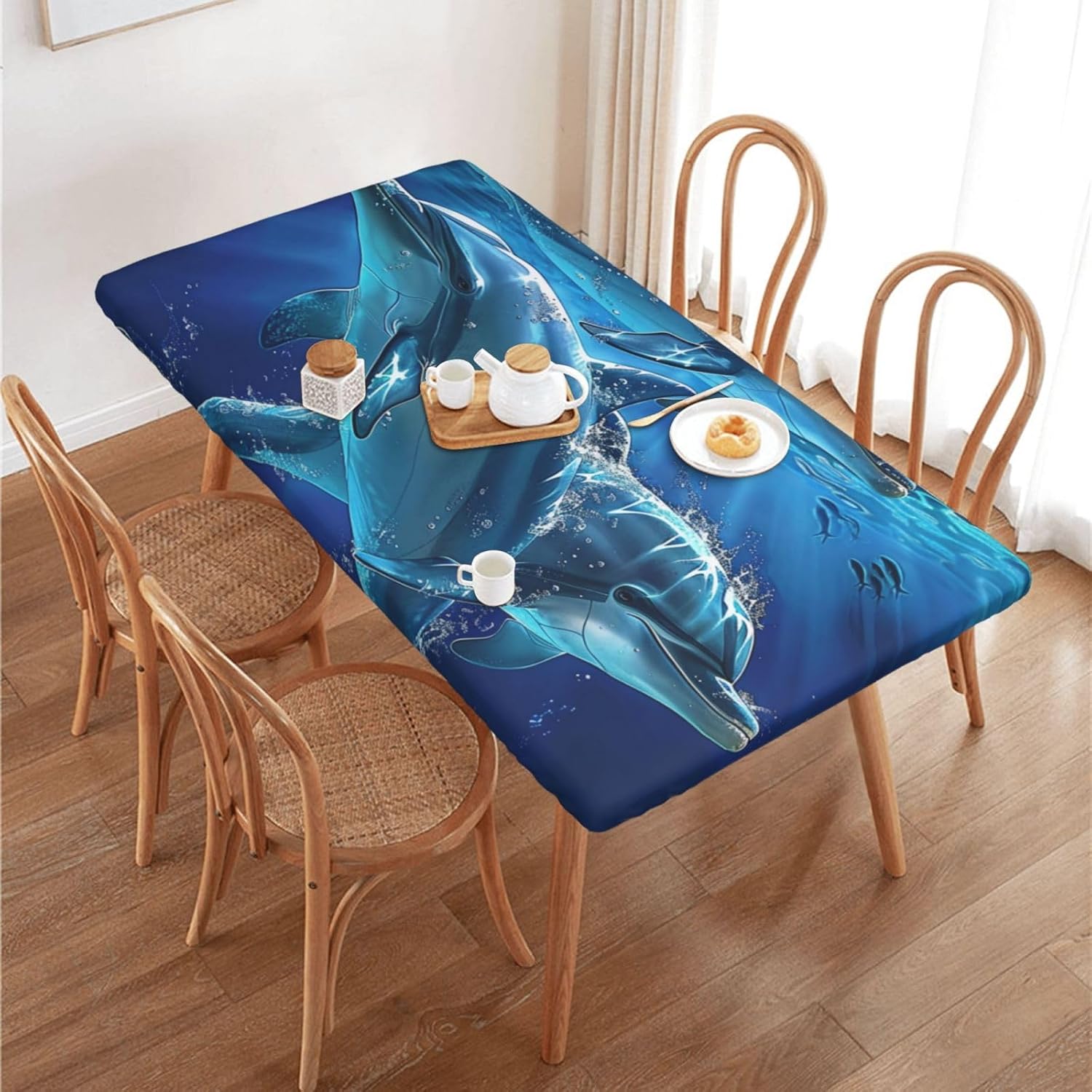 This Elastic Fitted Rectangle Tablecloth is a game-changer for your dining and event experiences! Made from top-notch waterproof twill polyester fabric, it offers unbeatable protection against oil and liquid spills, making it suitable for year-round use. Its stylish design adds a modern touch to any setting. Protect your table from various potential damages such as stains from drinks, wine, or grease, as well as heat and scratches. You'll notice its gentle yet effective safeguarding properties. And the best part? It can be used over and over again, featuring personalized and unique prints that transform every meal into a pleasant affair. Whether it's breakfast to boost your mood or a comforting dinner after a long day, this tablecloth has you covered. Cleaning is a breeze – simply hand wash or machine wash without worrying about fading or deformation. Hang to dry or give it a low-temperature iron if needed. It's not just for indoor spaces; take it outdoors for parties, barbecues, or camping without fretting about the wind or kids causing a mess. The square shape fits 4FT tables perfectly, with an elastic edge and elastic band closure for a secure and hassle-free setup. Make every occasion special with this beautiful and practical tablecloth, whether it's a picnic, wedding, anniversary, birthday party, Thanksgiving, or Christmas dinner. Enhance your dining environment with its fashionable patterns and enjoy its functionality across various venues like cafes, kitchens, terraces, and more.