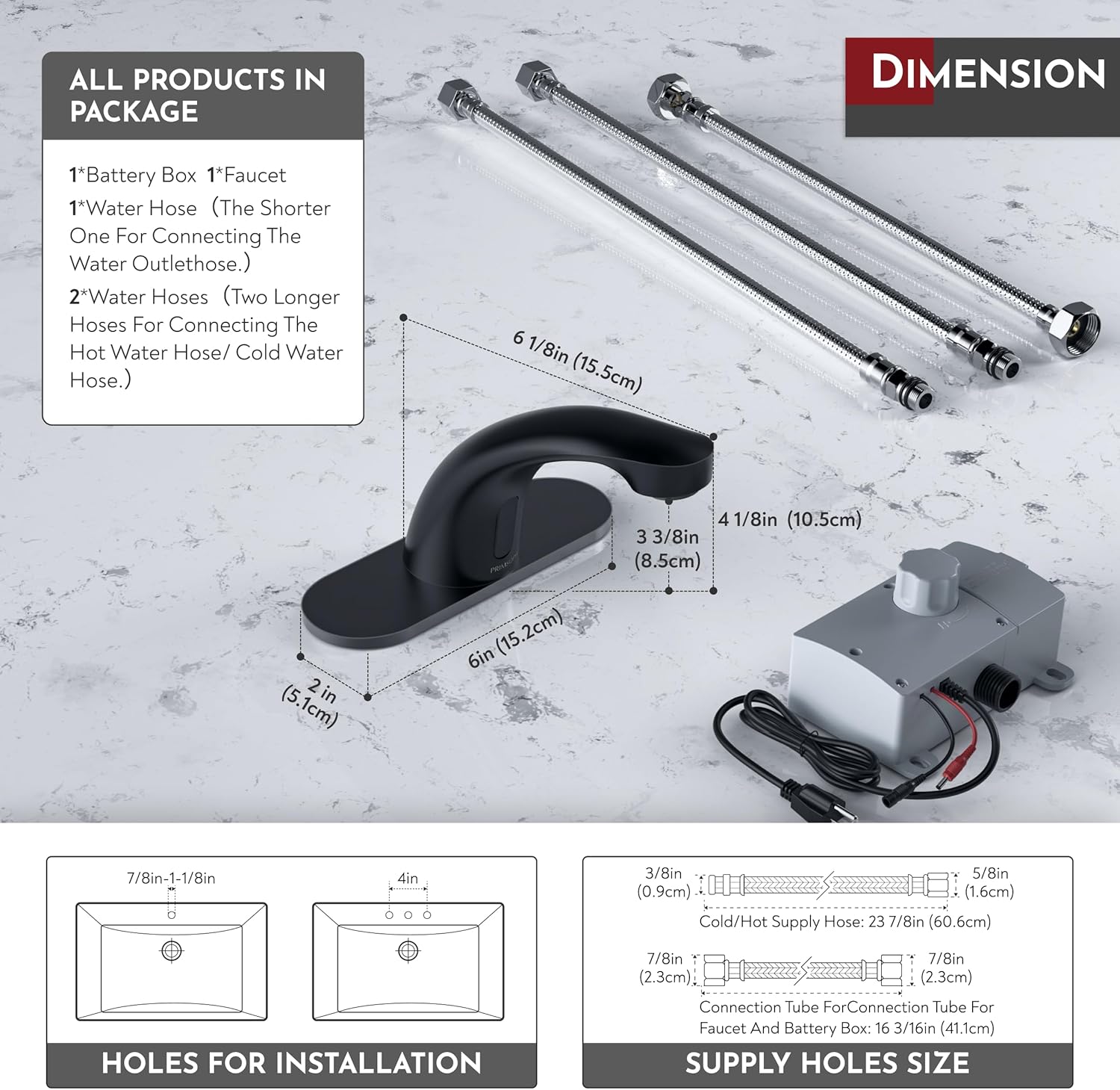PRIMSOPH Automatic Motion Sensor Hands Free Electronic Infrared Smart Commercial Touchless Bathroom Sink Faucet with Cover Plate Temperature Mixer Battery or Plug-in Powered Matte Black