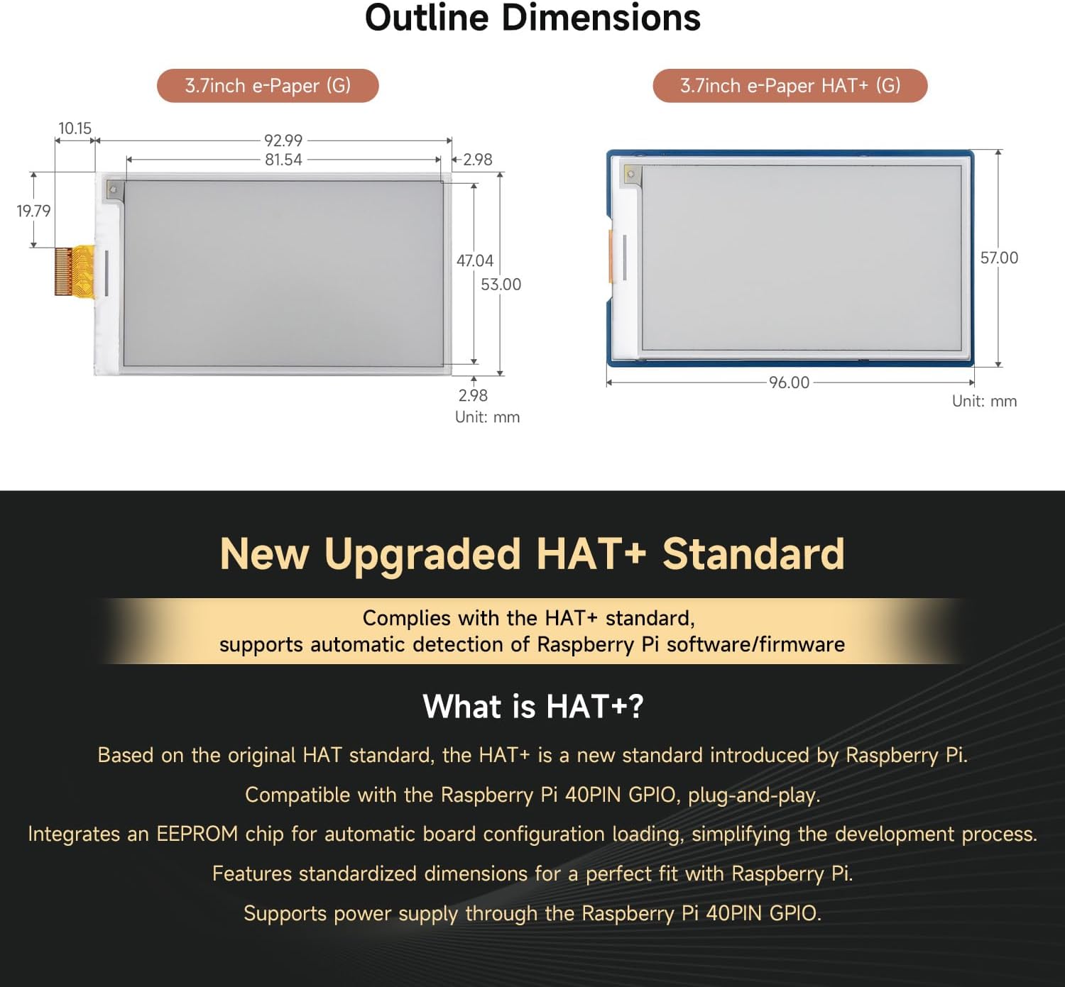 | Mfr Part Number | 3.7inch e-Paper HAT+ (G) |
